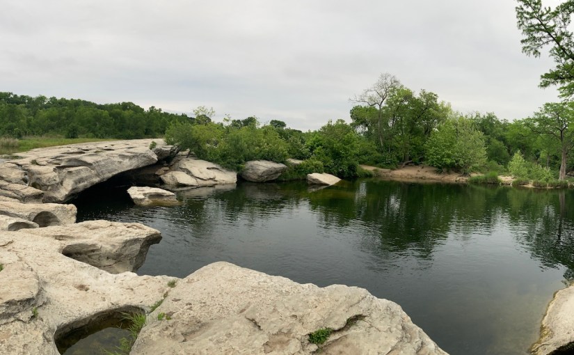 I walked down beside the creek. Tall trees edged the far side of the water. The water ran clear and deep. Far upstream, it flowed out of the limestone hills, then through the city, and now approached its escape.