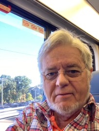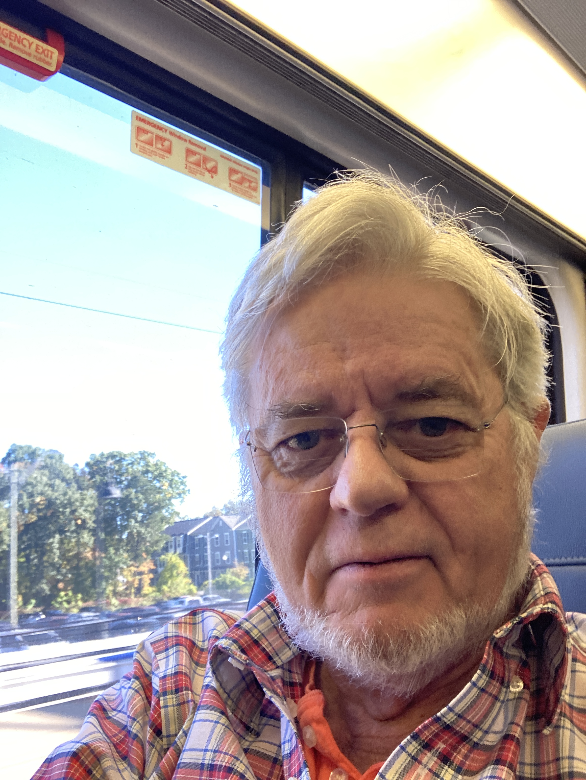 Robin rides in style on the Acela.