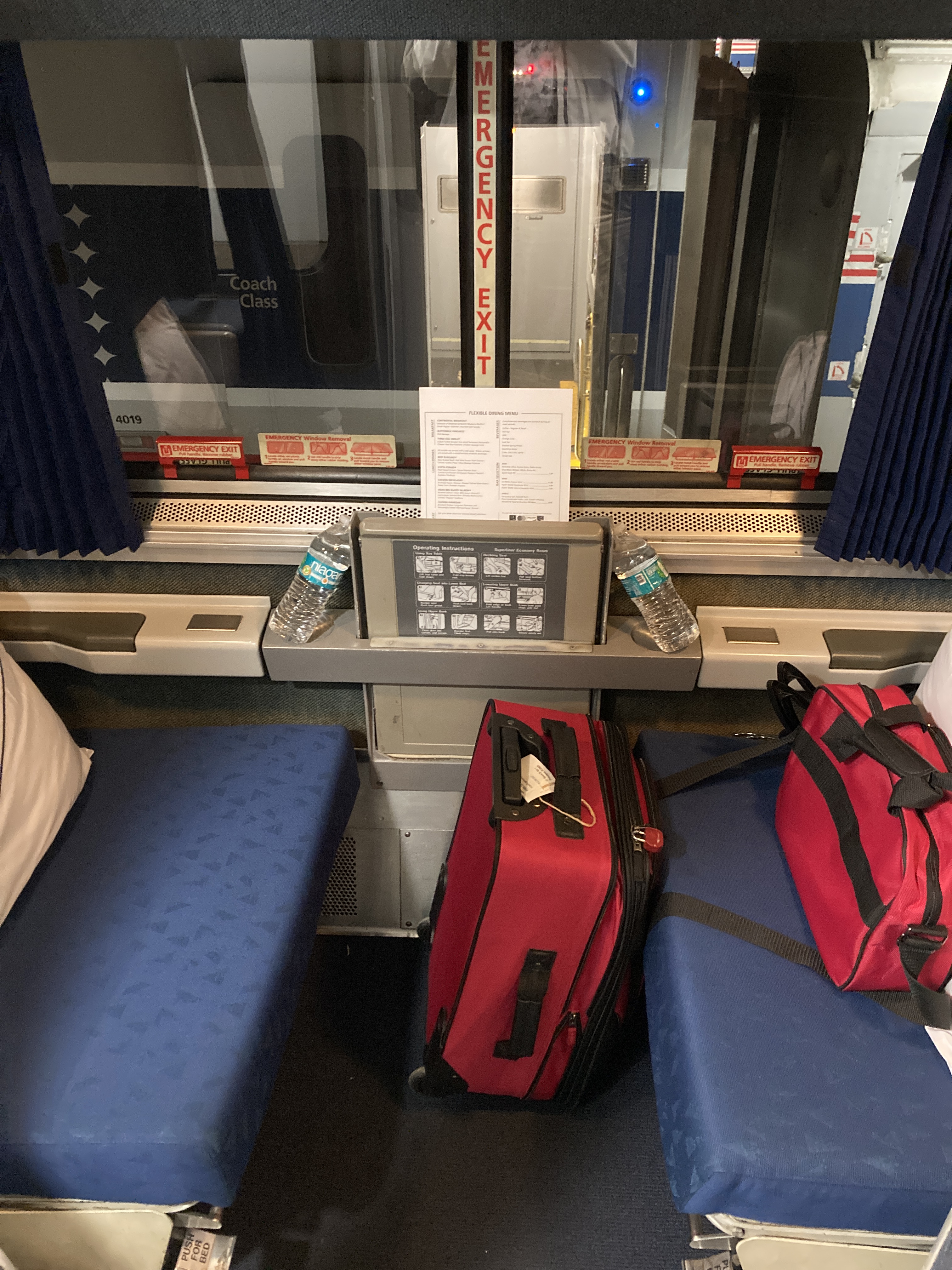 Previous ImageNext Image Roomette on the Texas Eagle IMG_9266 The roomette is a little sitting room by day and a bedroom by night.