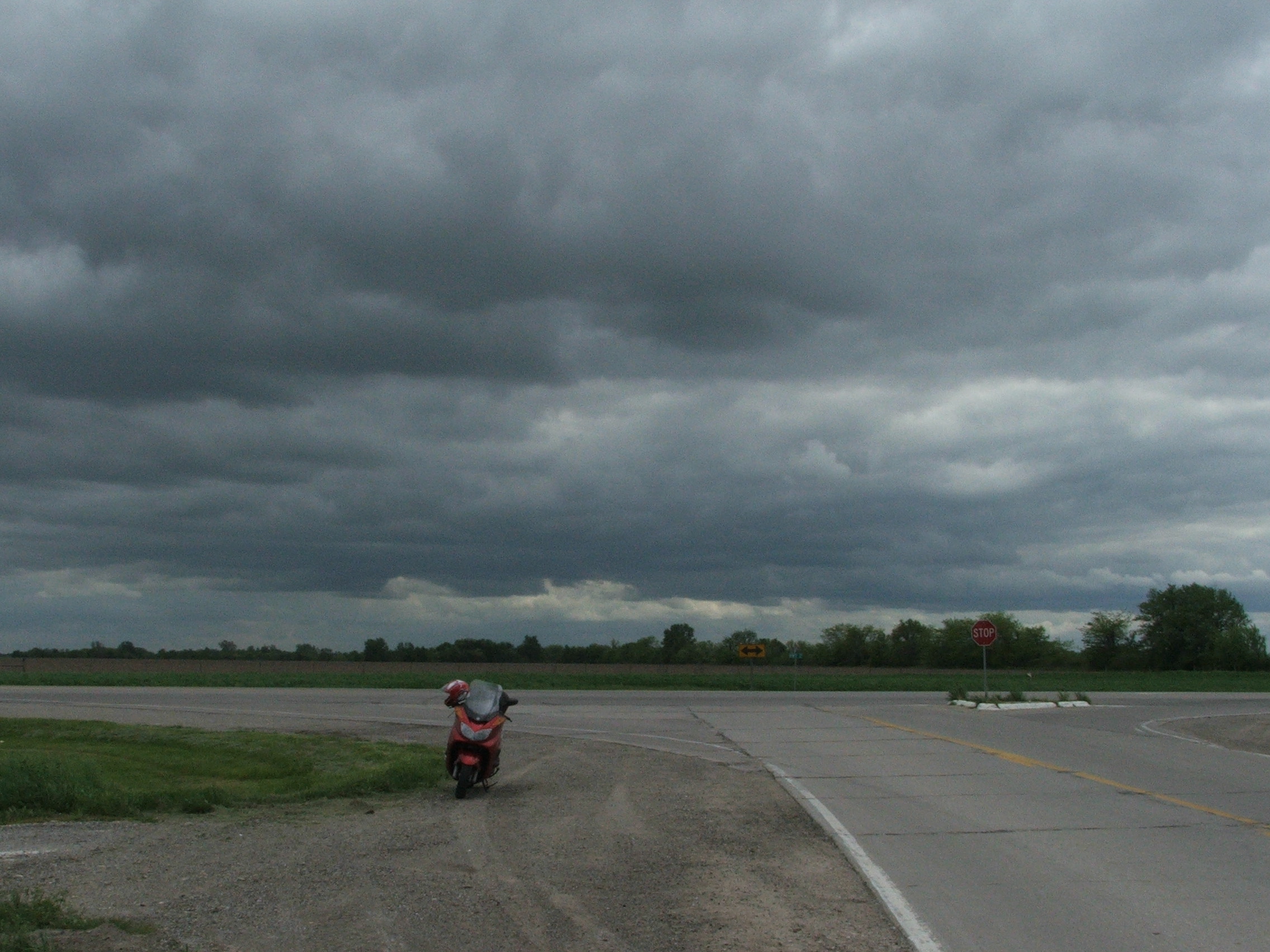 On a road trip through the midwest in 2006, I rode my big scooter through some of the big empty spaces. I thought I would outrun the storm, but it caught up with me.